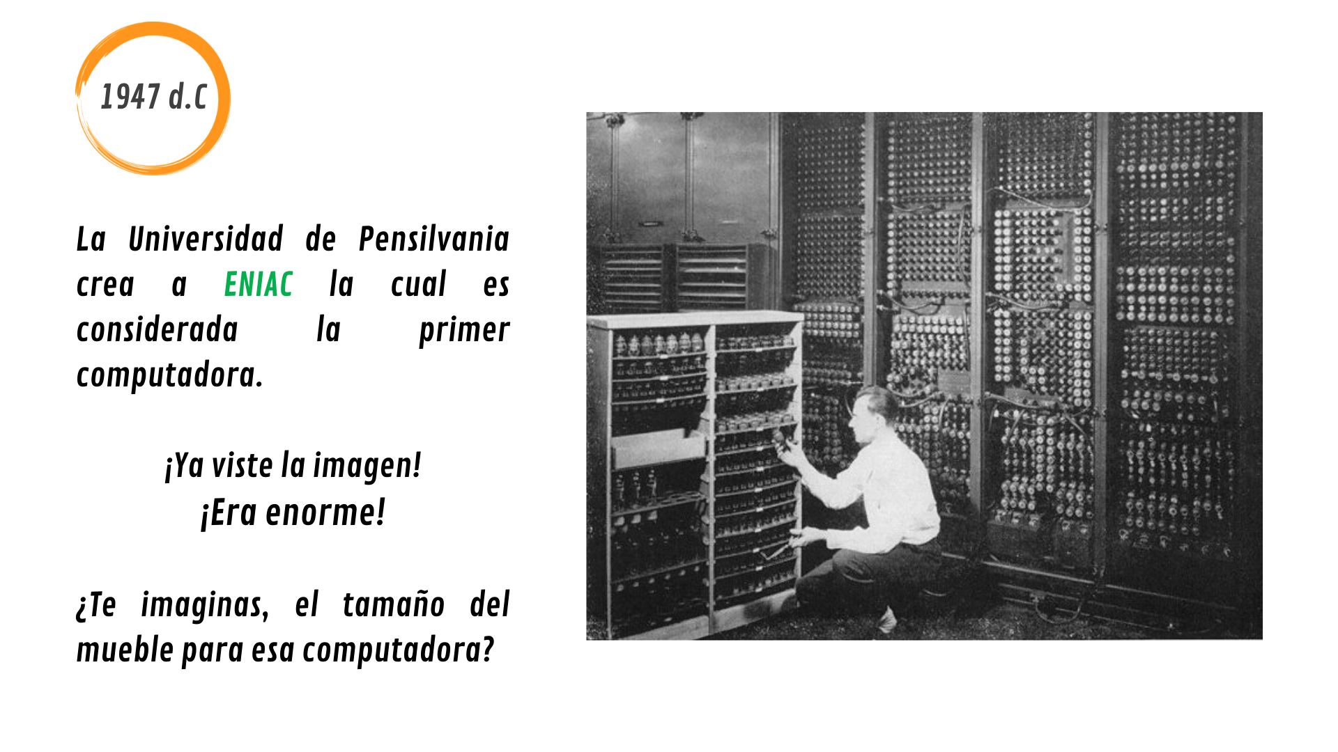 Usa las flechas para desplazar las imágenes y observa cuáles fueron algunos de los hechos más sobresalientes para llegar a tener una computadora tal y como la conoces hoy en día.